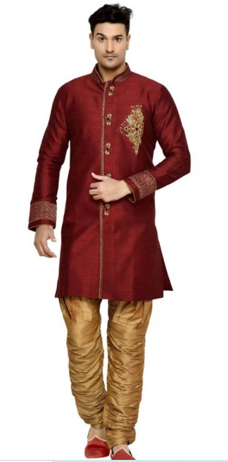 INDIAN POSHAKH MAROON SEMI INDO BROCKET KURTA PAJAMA ITEM 15034007