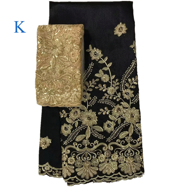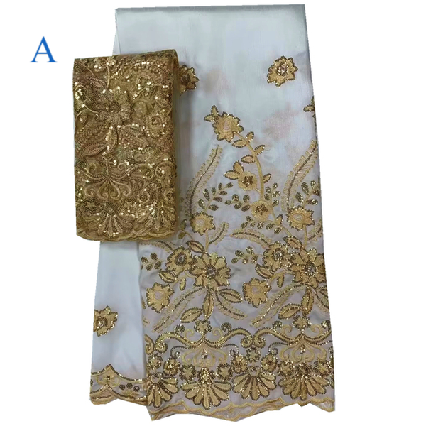 White & Gold 5 Yards African George Lace Fabric Silk Sequin Fabric