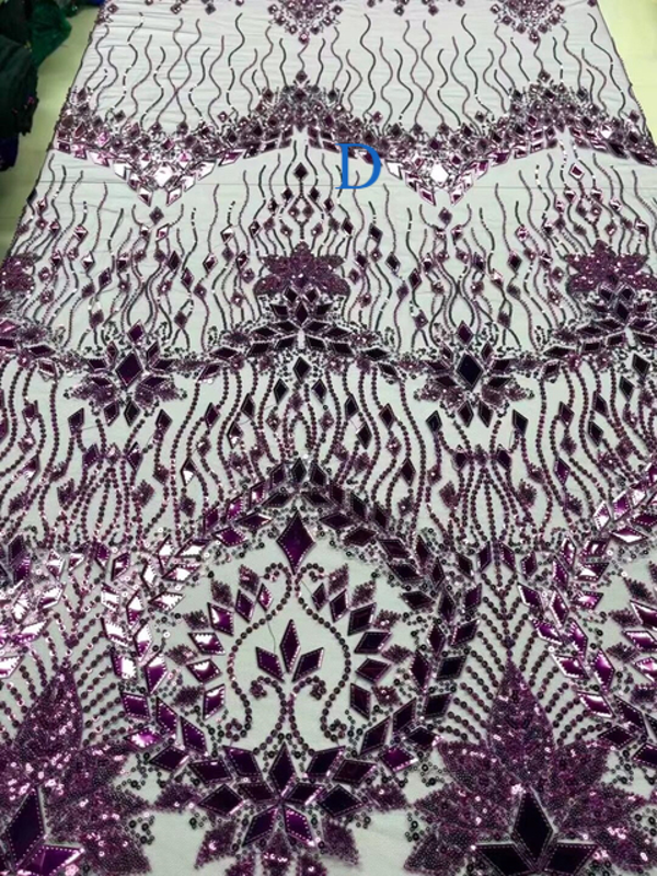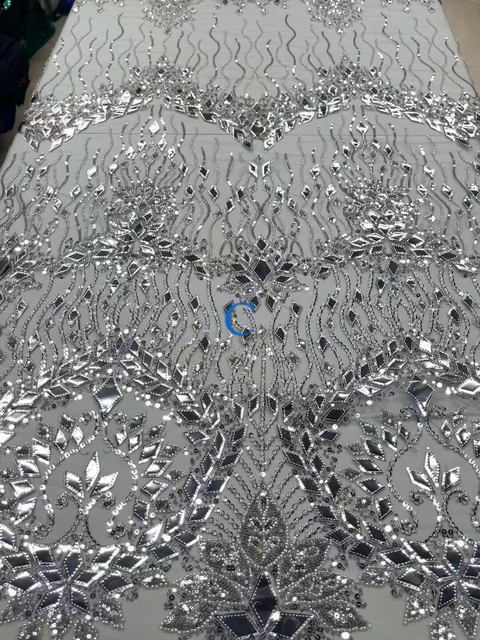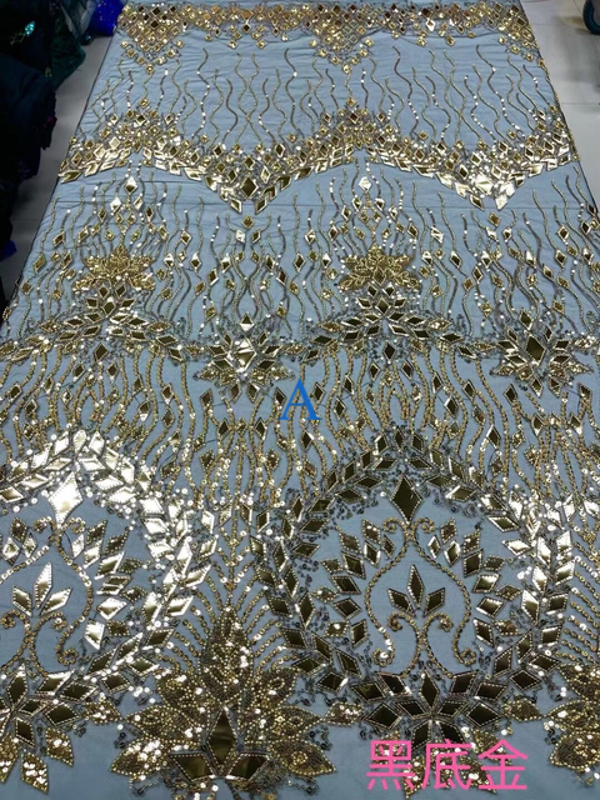 2023 High Quality African Nigerian Tulle Lace Fabric With Sequins Embroidery Sewing Guipure Net Cloth Prom Dresses Beads 5yards