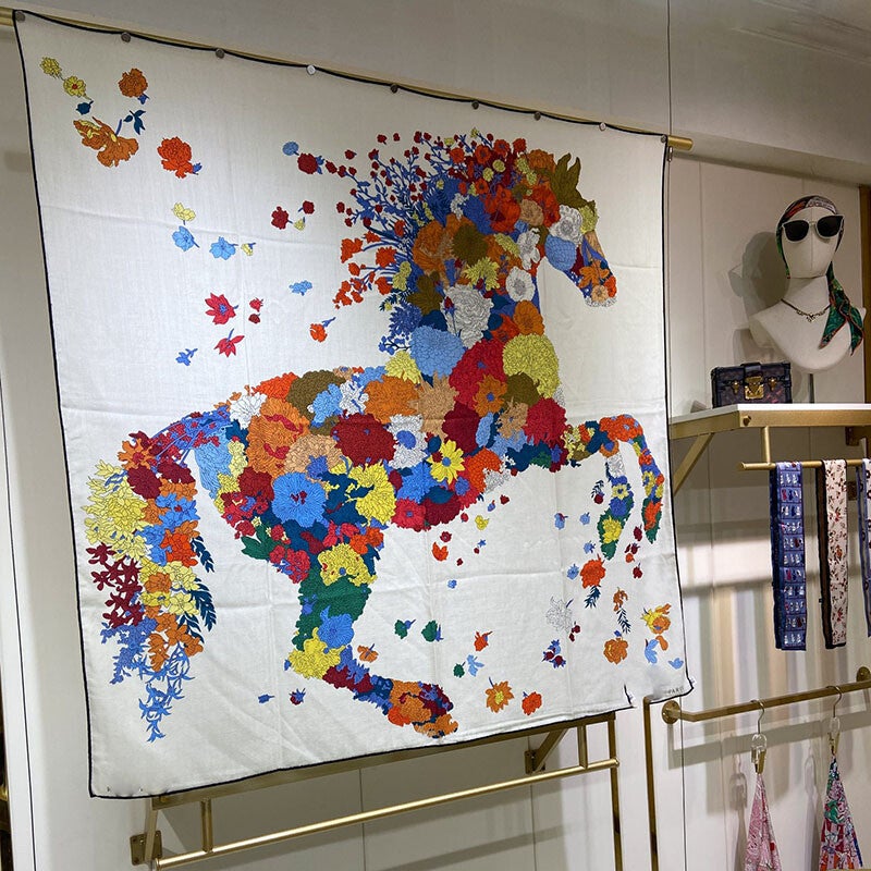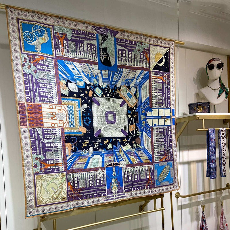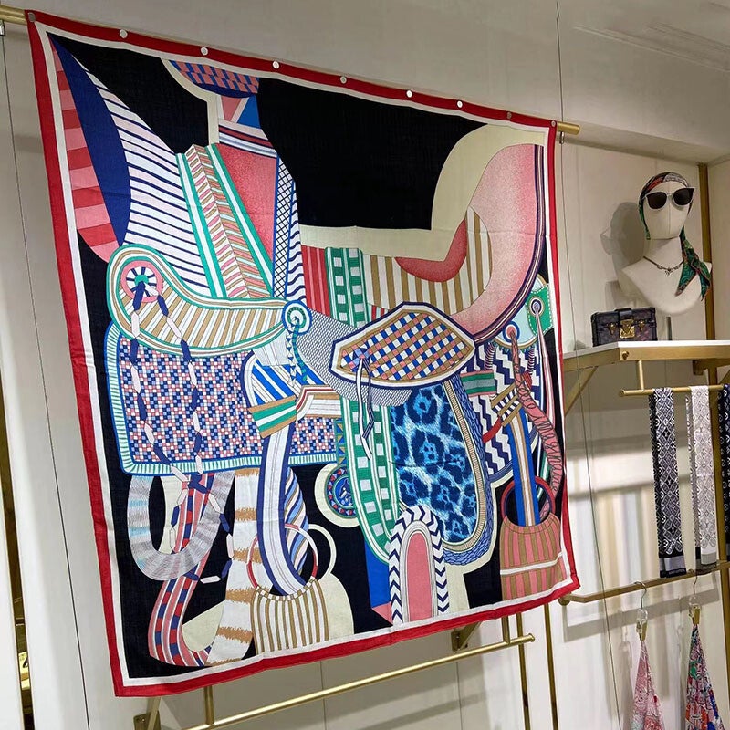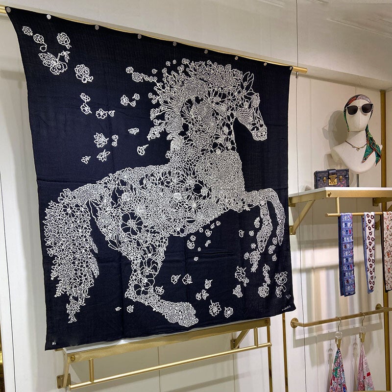 Luxury Scarf Women 50% Cashmere 50% Silk Double-sided Printing Shawl