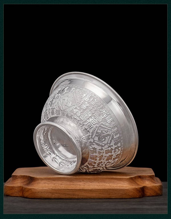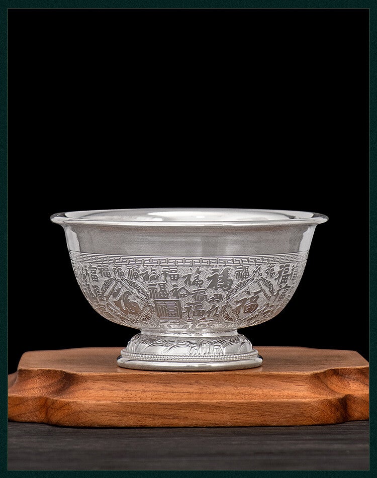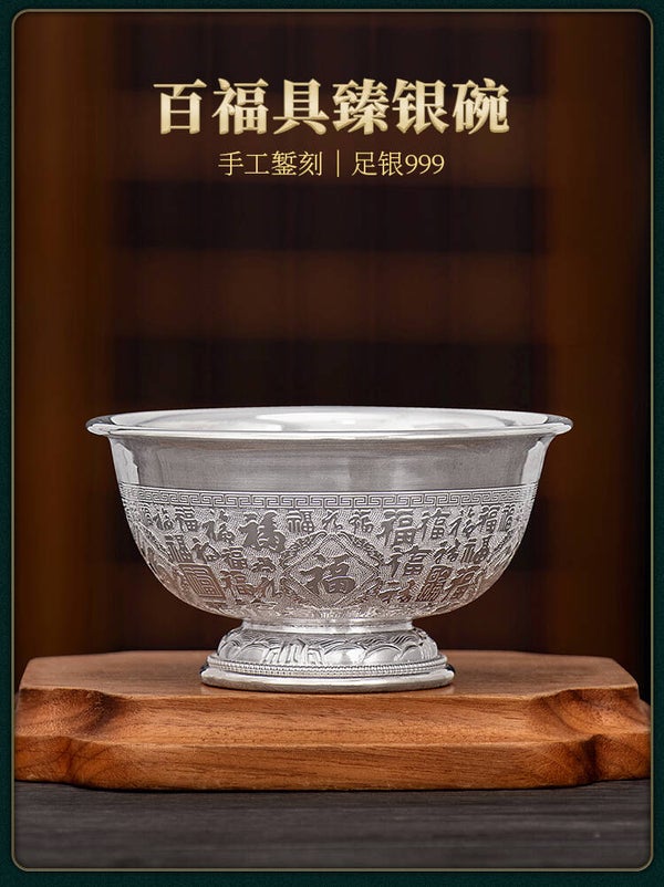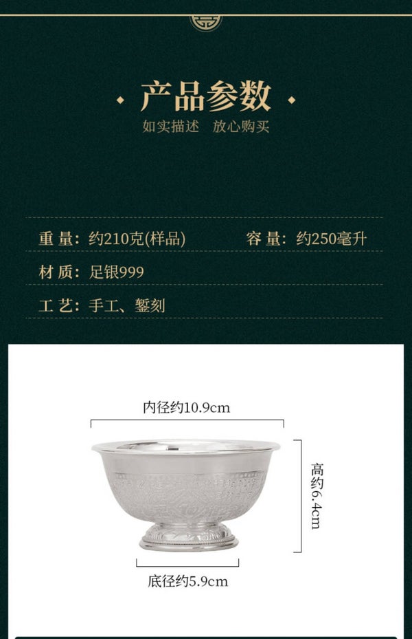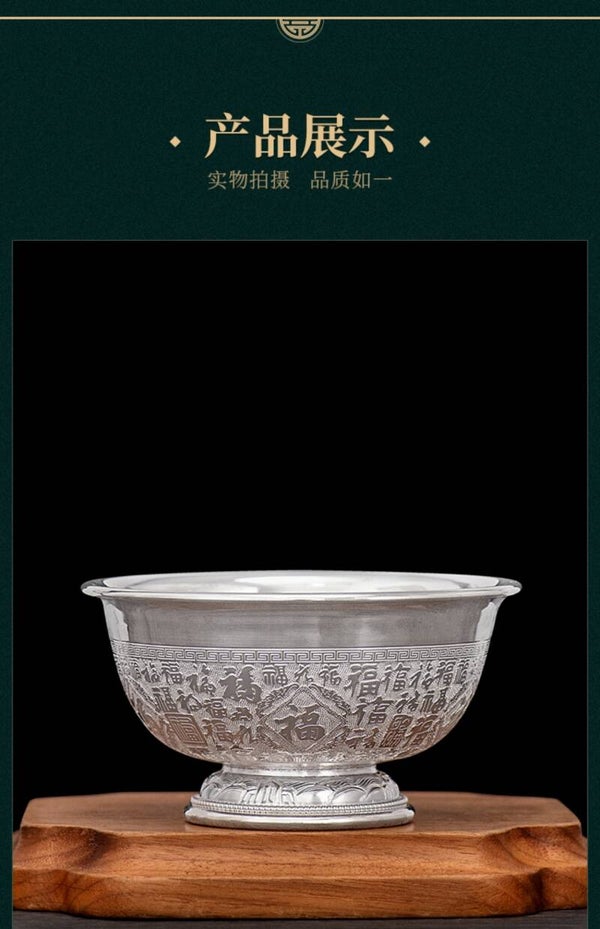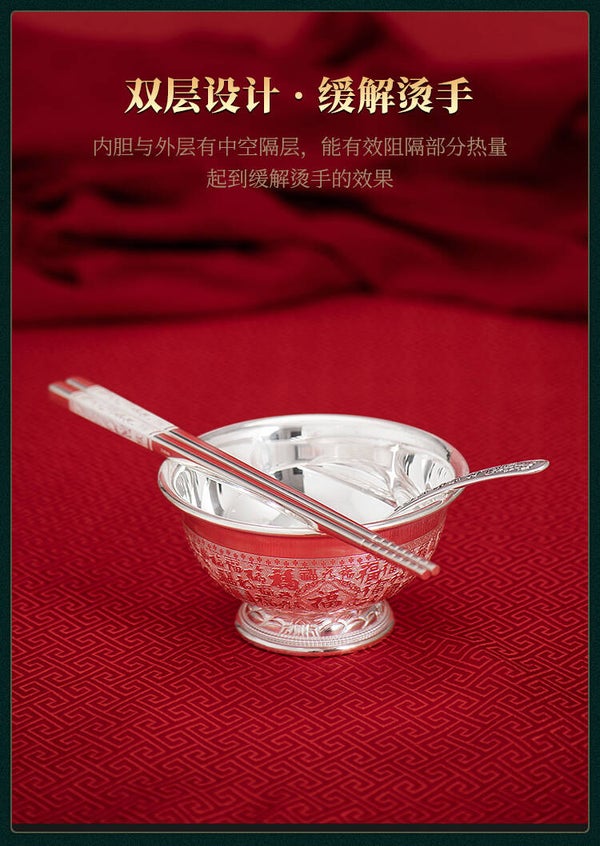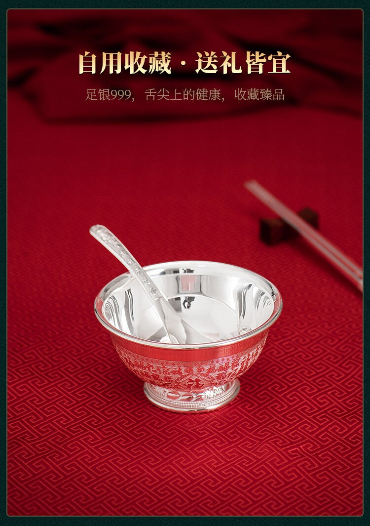 Silver Bowl 999 pure silver household silver rice bowl Momofuku Baby Diameter: 4.5 inch Color: Gray