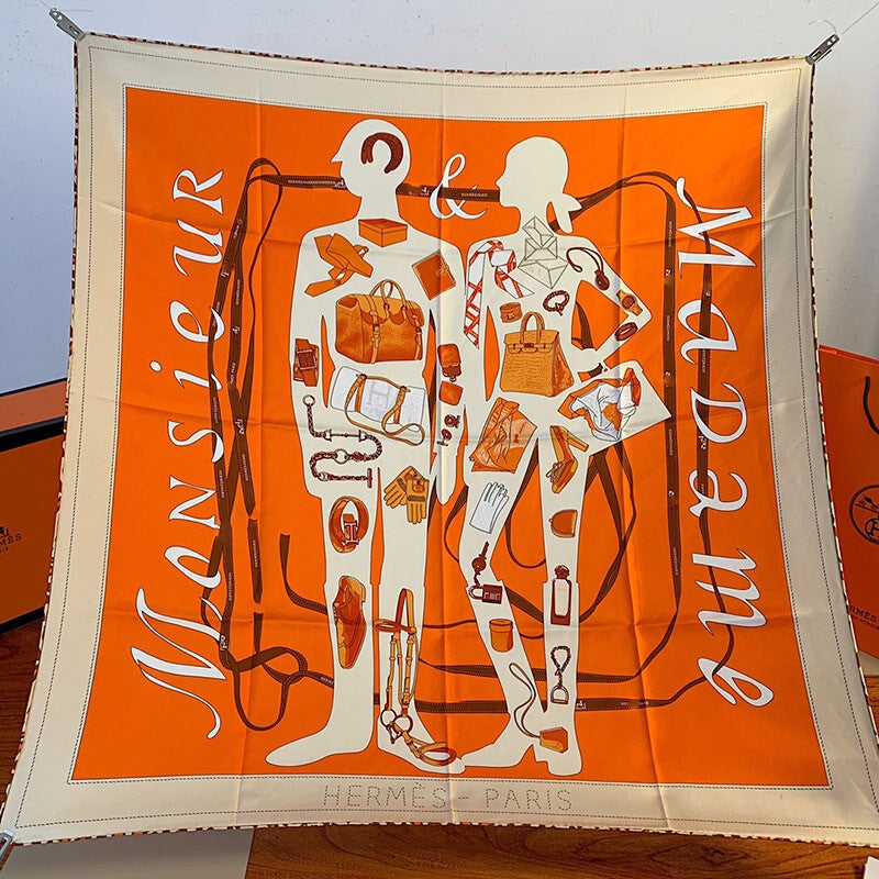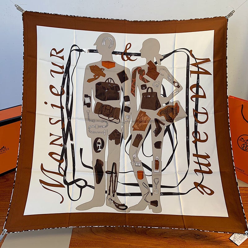 Luxury Brand Woman Scarf Herm** Double sided Printing 90cm Silk Twill