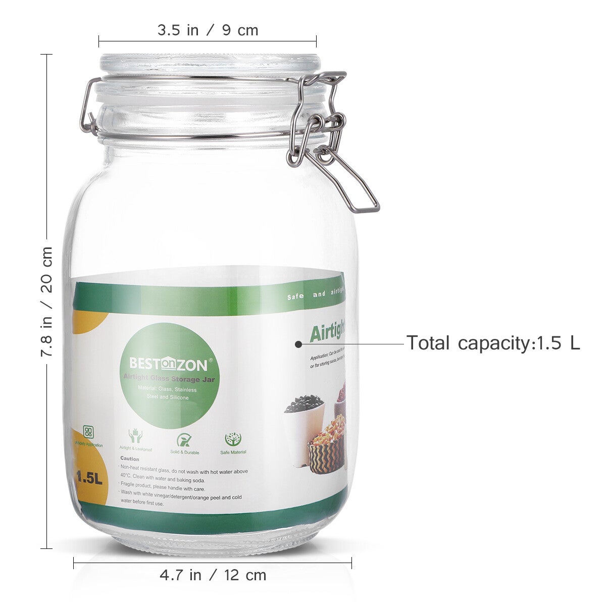 BESTONZON 2PCS Food Storage Containers 1.5L Airtight Glass Storage