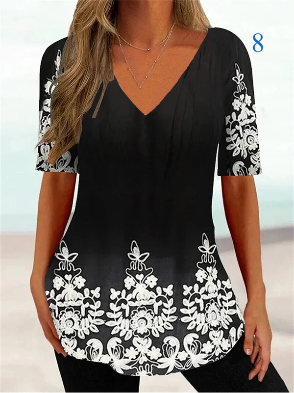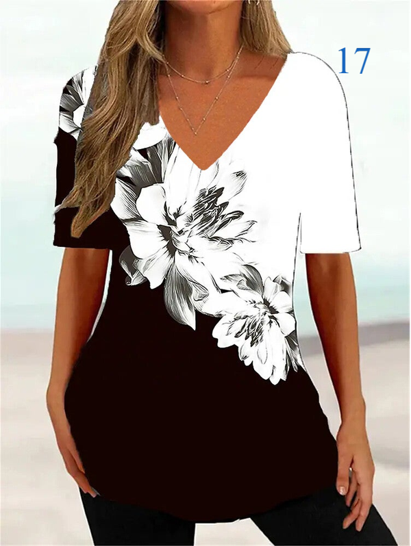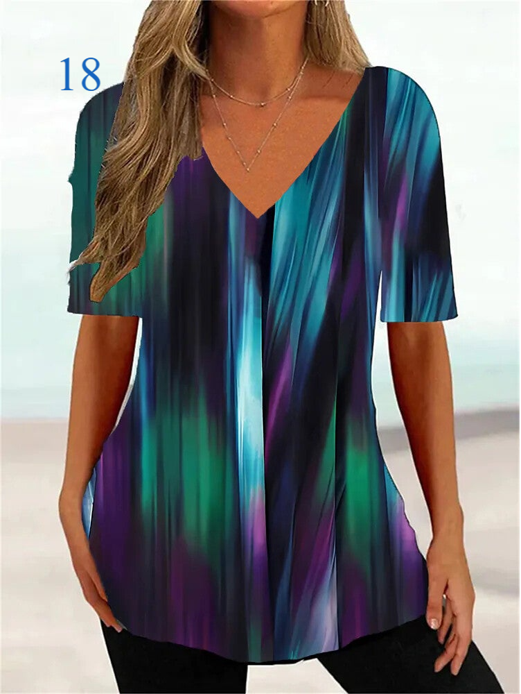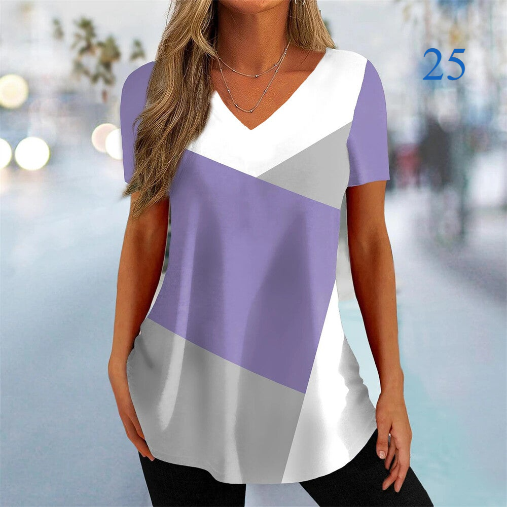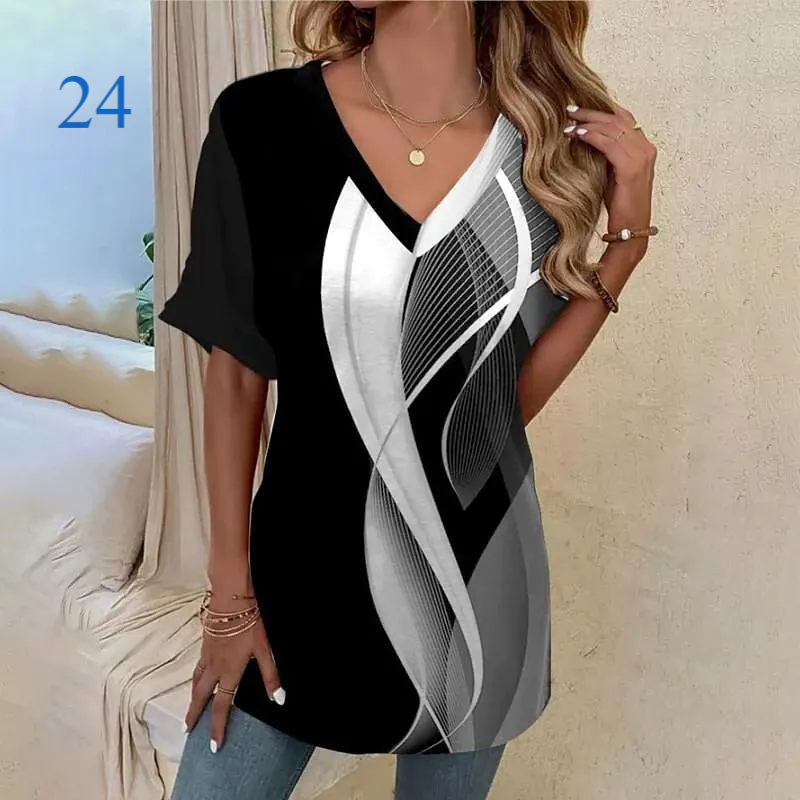 Simple Women's T-shirt 3d Wave Curve Tee Fashion V-neck Summer Short