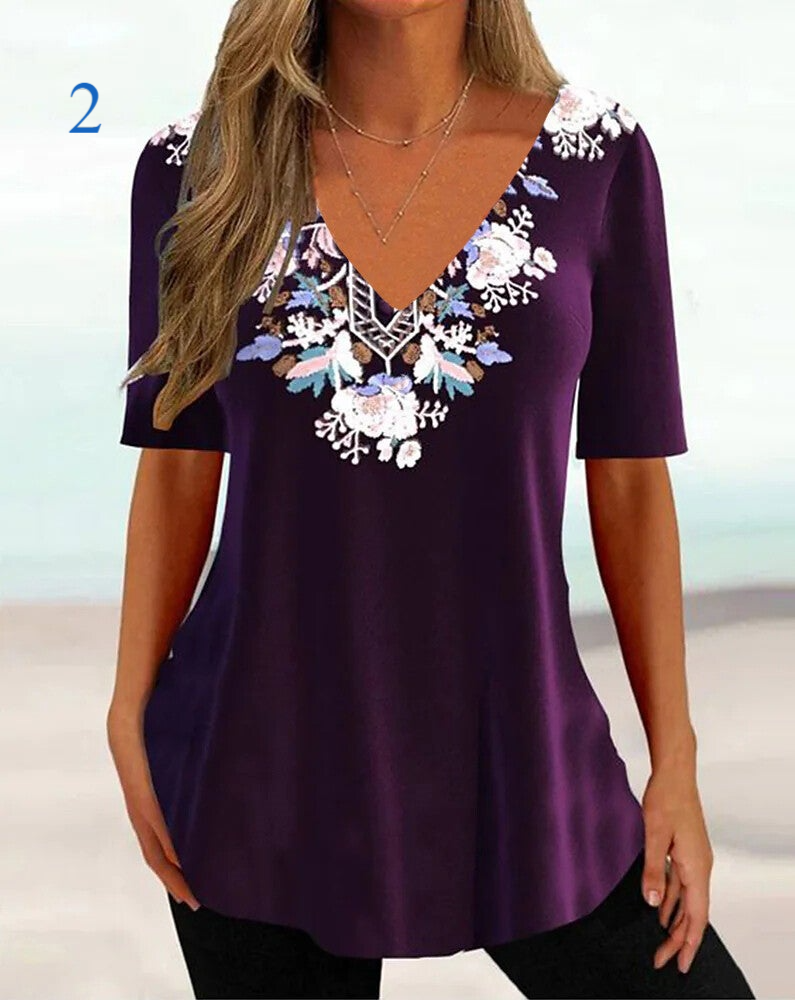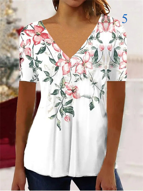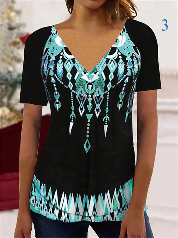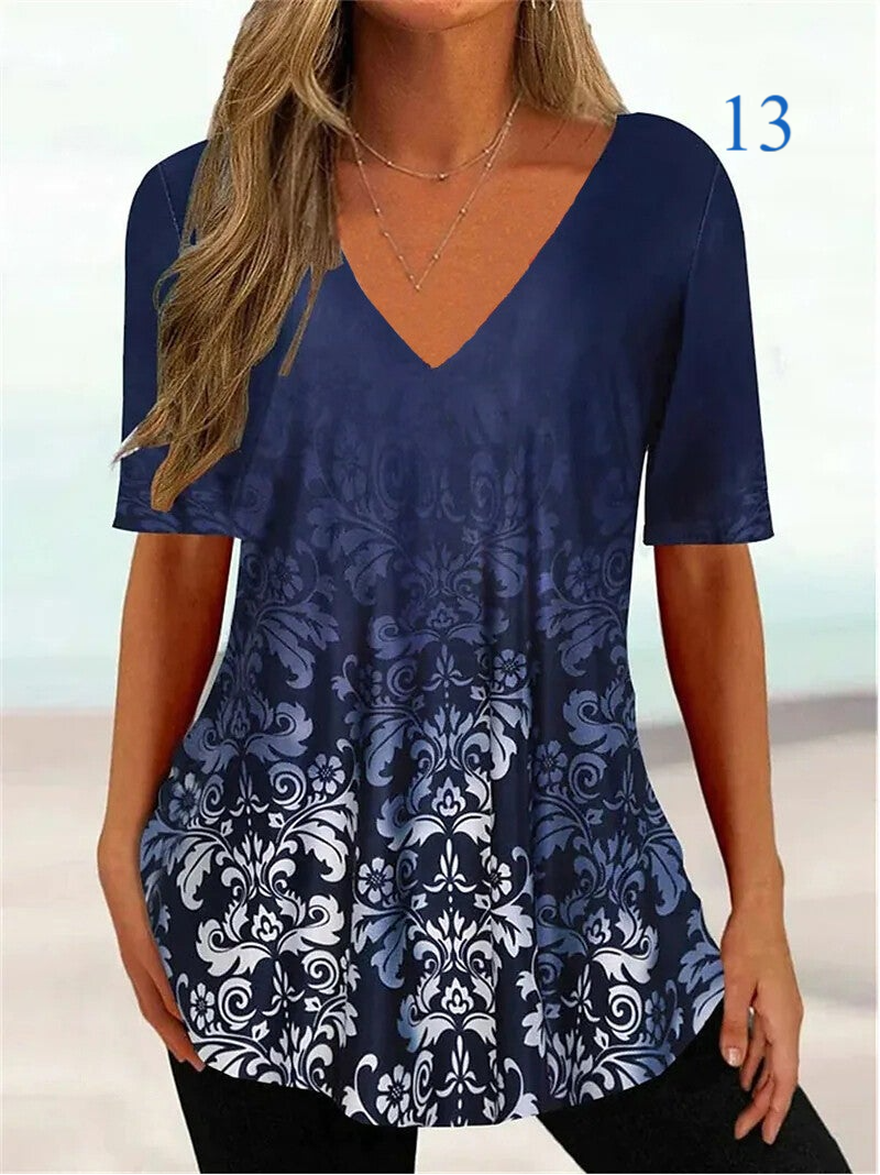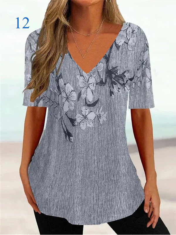 Simple Women's T-shirt 3d Wave Curve Tee Fashion V-neck Summer Short