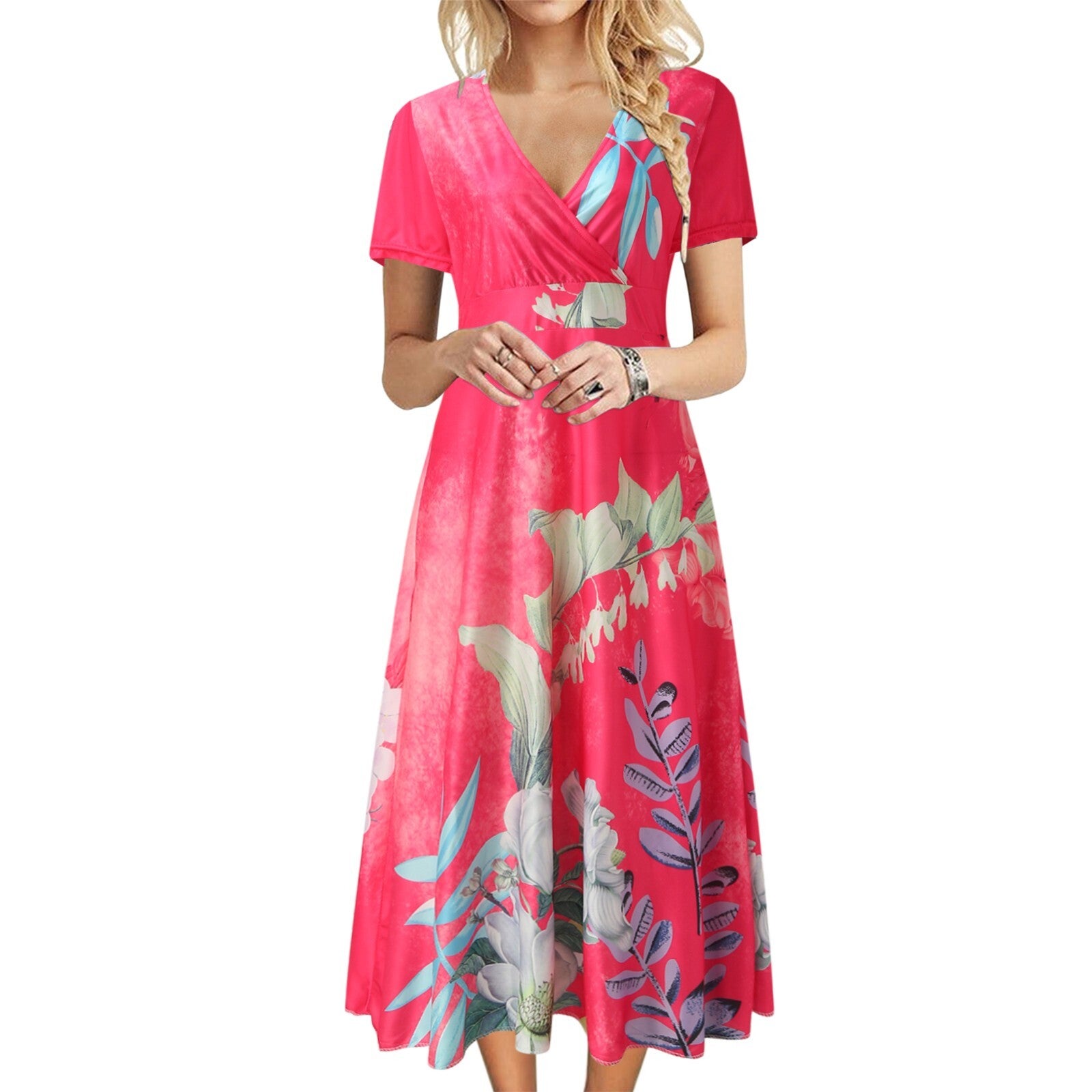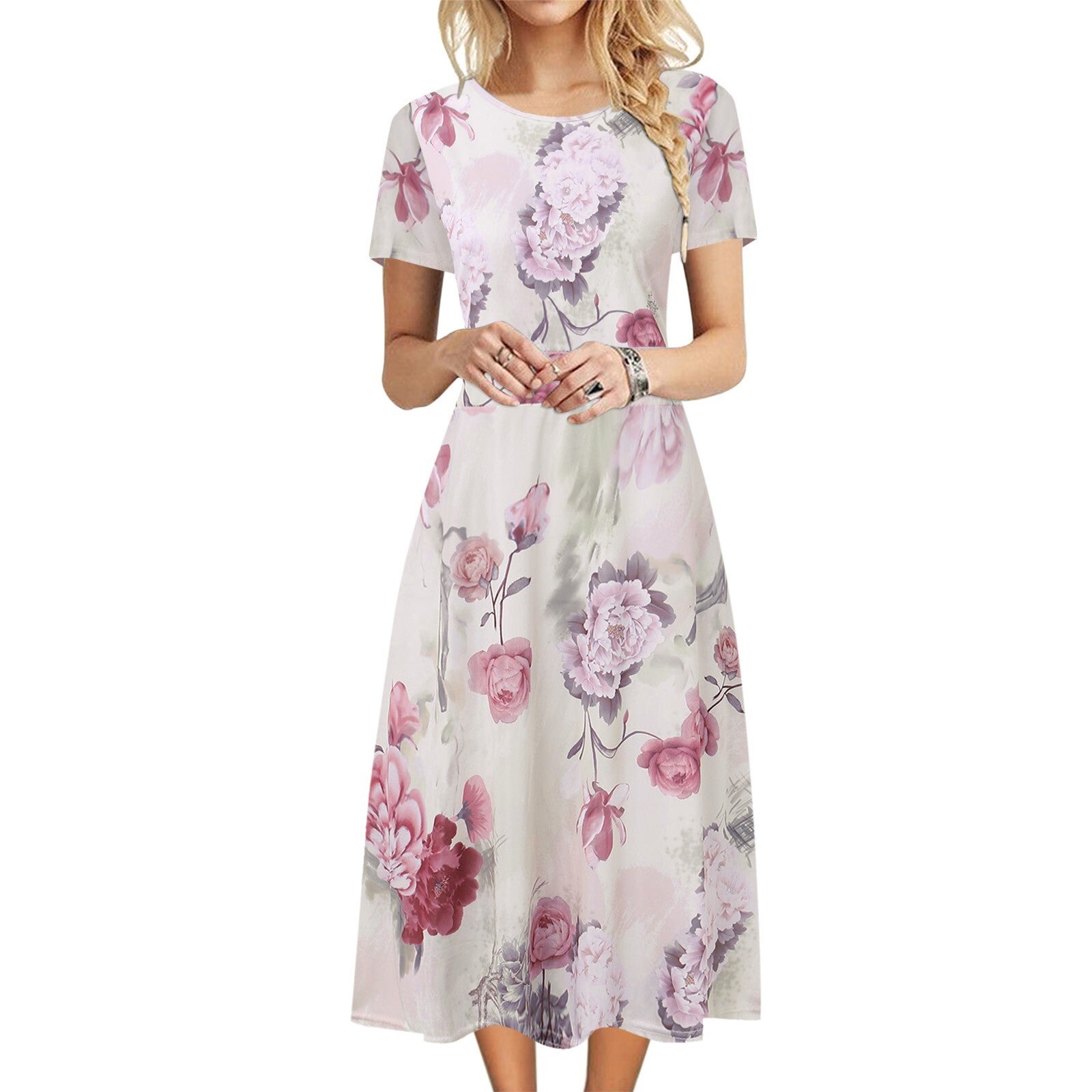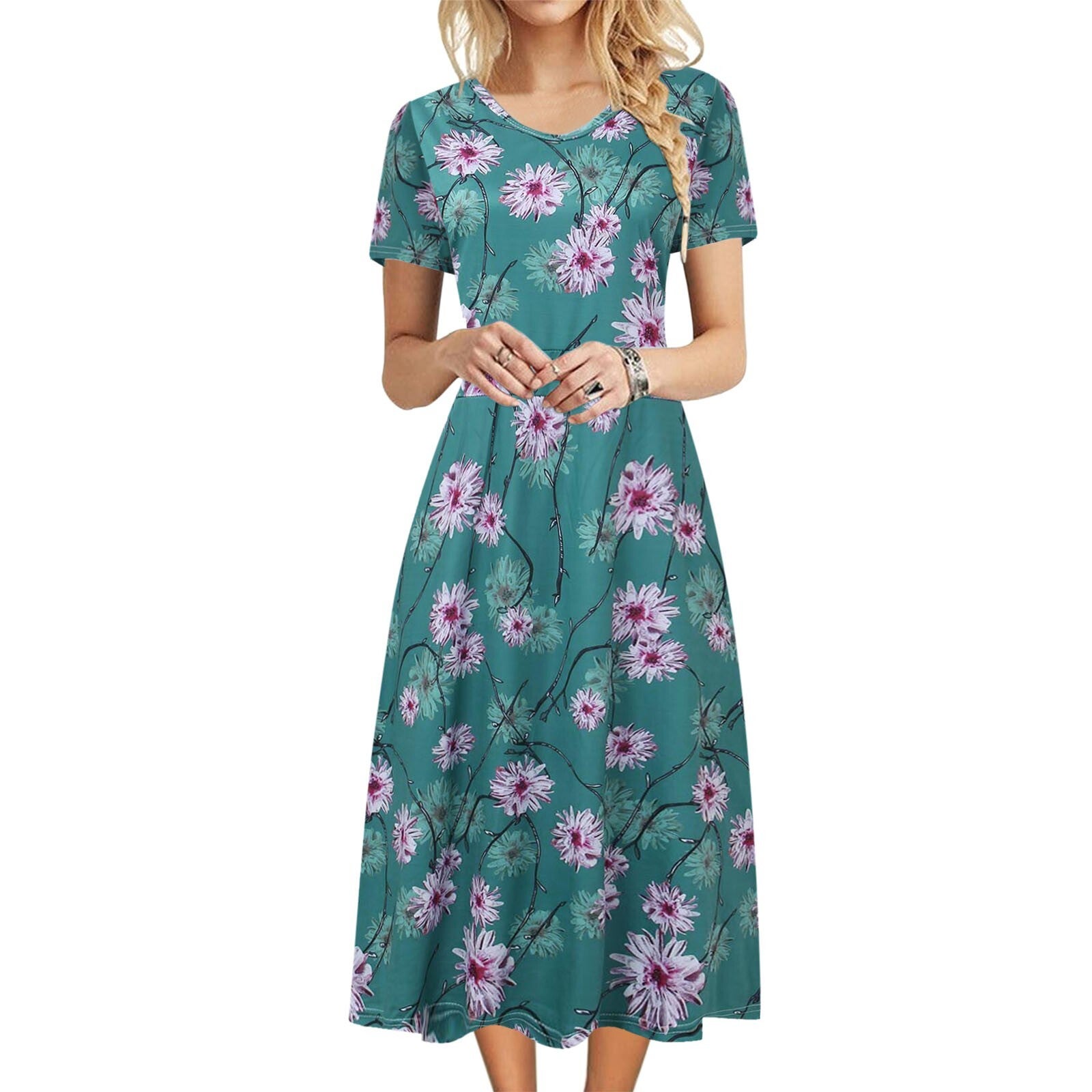 Summer New Floral Print Women's Vest Dress Casual O & V Neck Short Sleeve