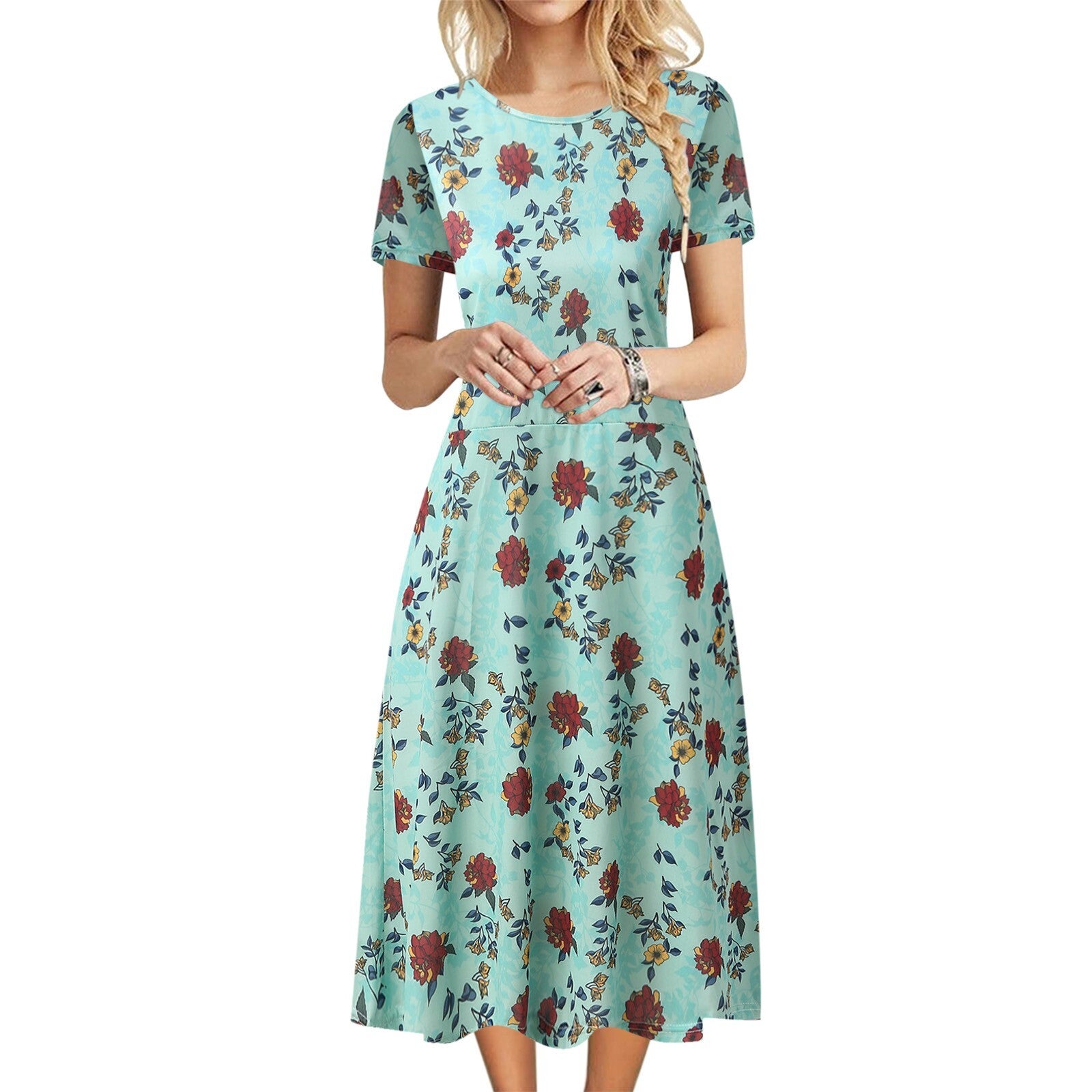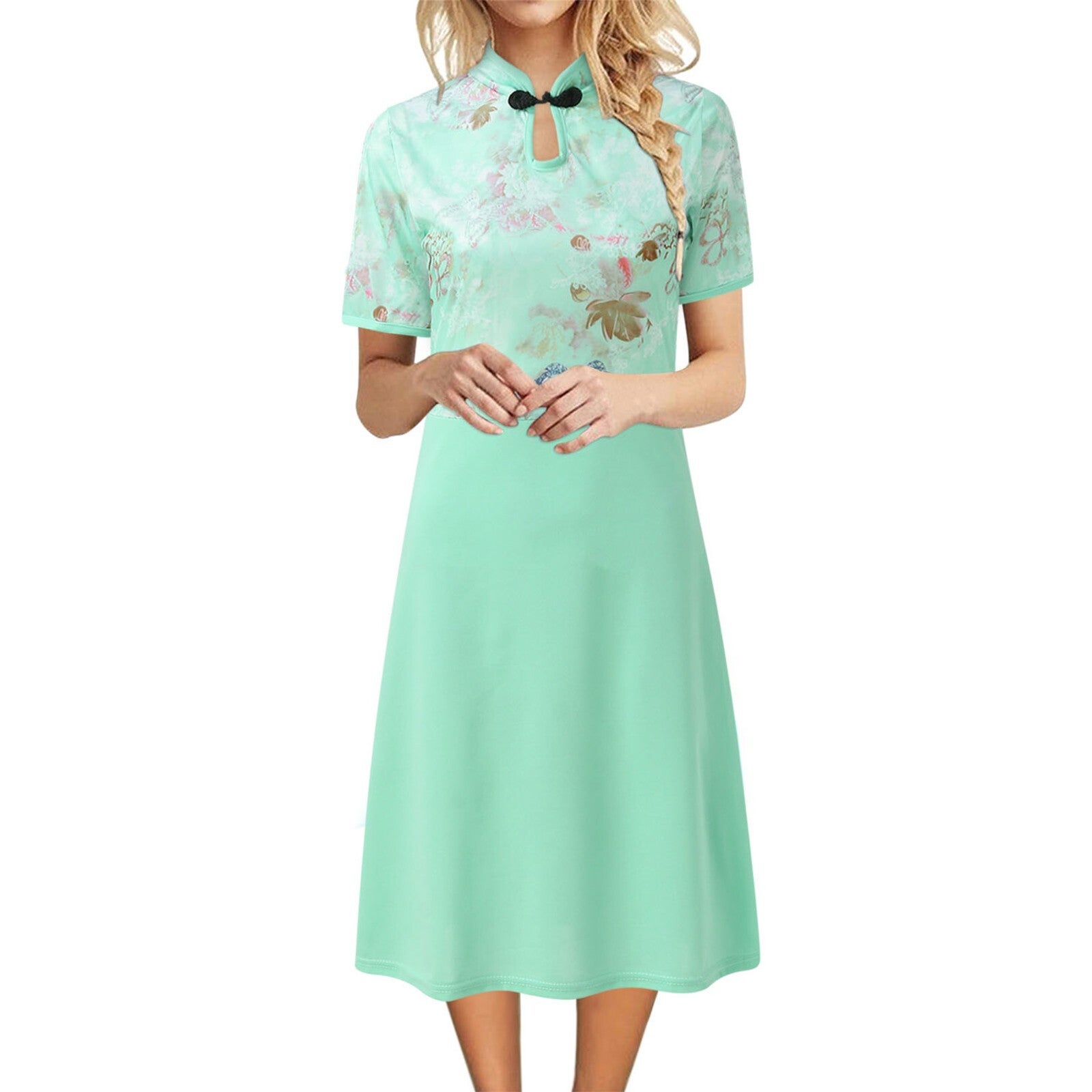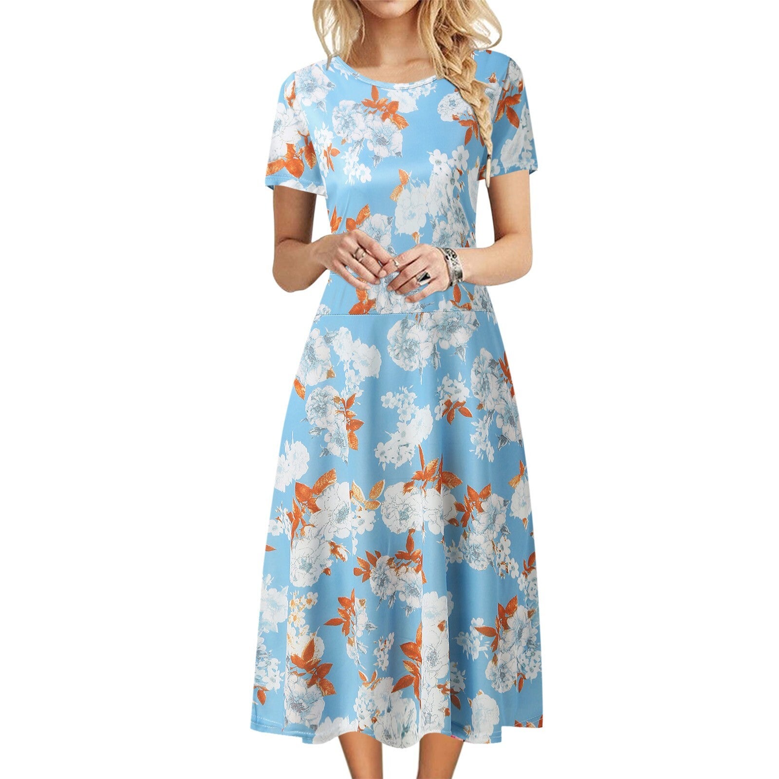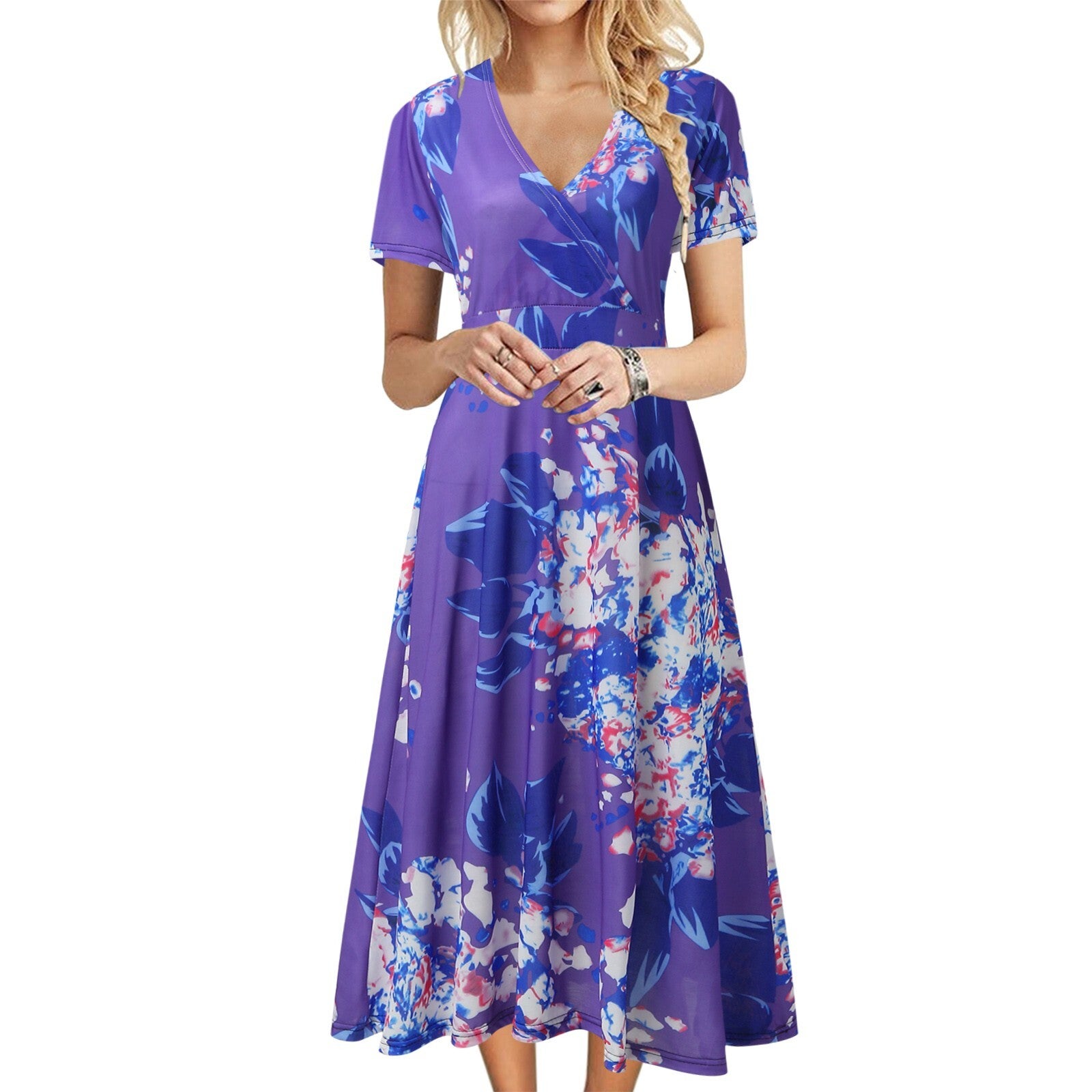 Summer New Floral Print Women's Vest Dress Casual O & V Neck Short Sleeve