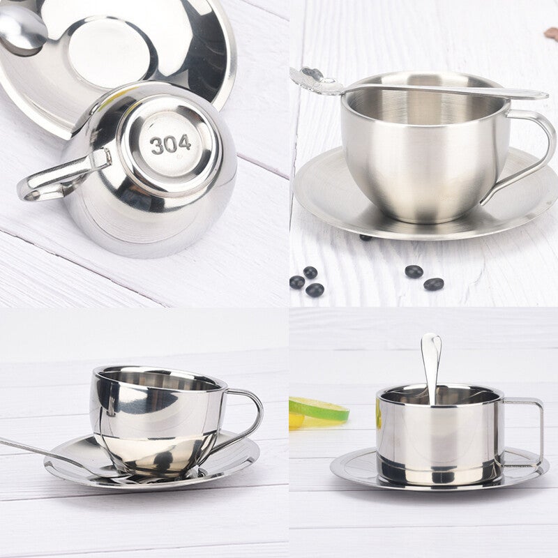 Stainless Steel Coffee Cup Saucer | Stainless Steel Coffee Cups Set
