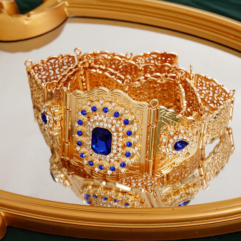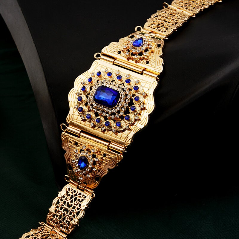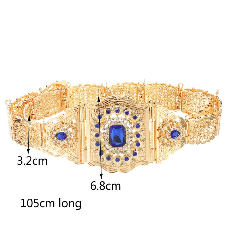 Moroccan Gold Blue Wedding Jewelry | Moroccan Gold Caftan Belt Blue