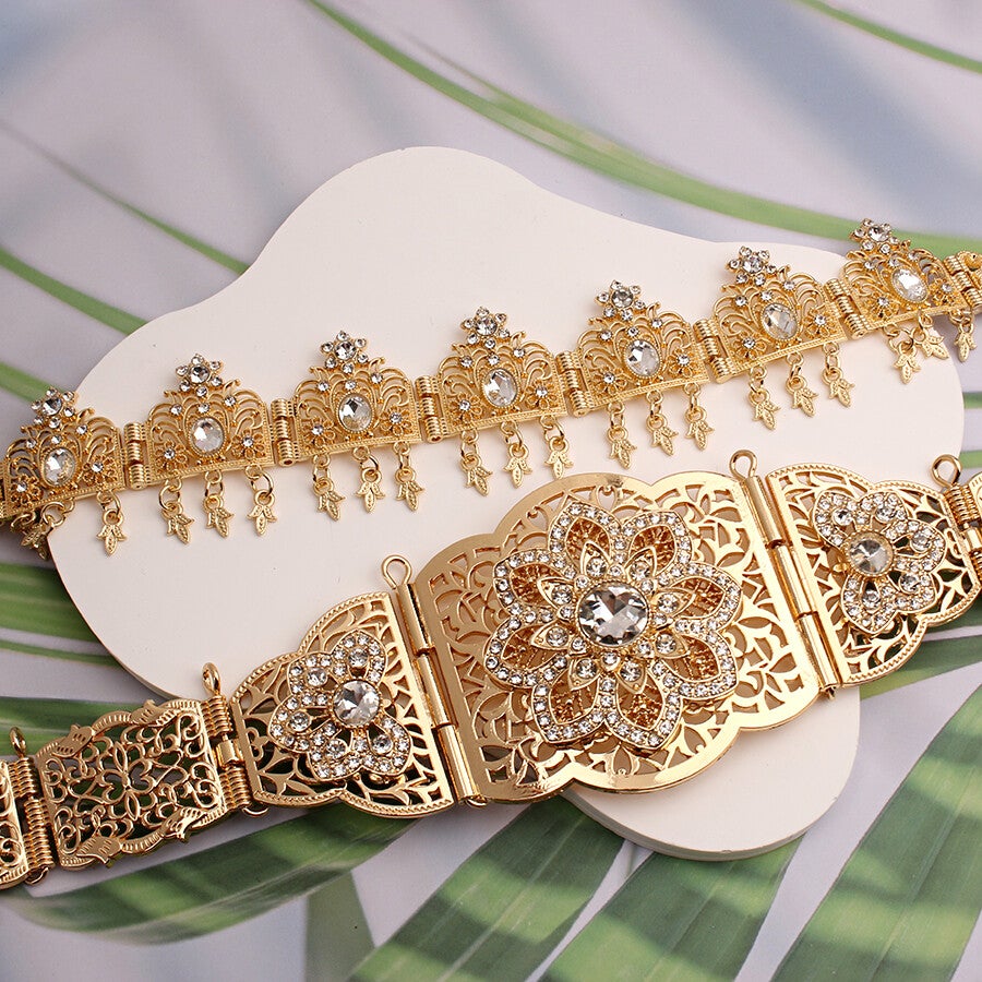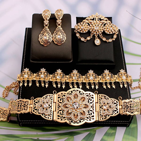 TAKE A LOOK AT THIS:Morocco Caftan Wedding Belts Gold Plated Luxury Wedding Jewelry Set for Bridal Muslim Arabic Bridal Dress Chain Bride Accessory PRODUCT PROPERTY:✨ 1: It is made of high quality materials, metal.The decoration is diamonds.The type of our product is wedding belts.Product original from cn(origin). ✨ 2: The department name of our product is adult. ✨ 3: It is made in zhejiang of cn. REASONS TO BUY:✨ Wedding dress belts bridal belts: our wedding belts are a perfect pick to match a wedding dress, a bridal dress or other special occasion. ✨ Bridal dresses accessories: a line of high quality muslim caftan jewelry is suitable for wedding dresses,wedding dresses,bridesmaid dresses,prom dresses and other special occasions. ✨ Jewelry accessories caftan: a brand-new item that has been selected for sale. keep in mind, we have carried out hundreds of compliments on every occasion and every detail is considered to be of the highest quality. BUYER SAYS:✨ It is beautiful to see in time it is the color s in turn. ✨ Very pretty conforms to the image.