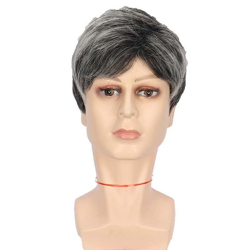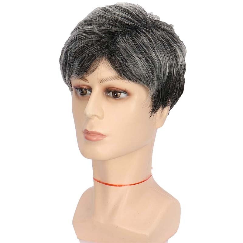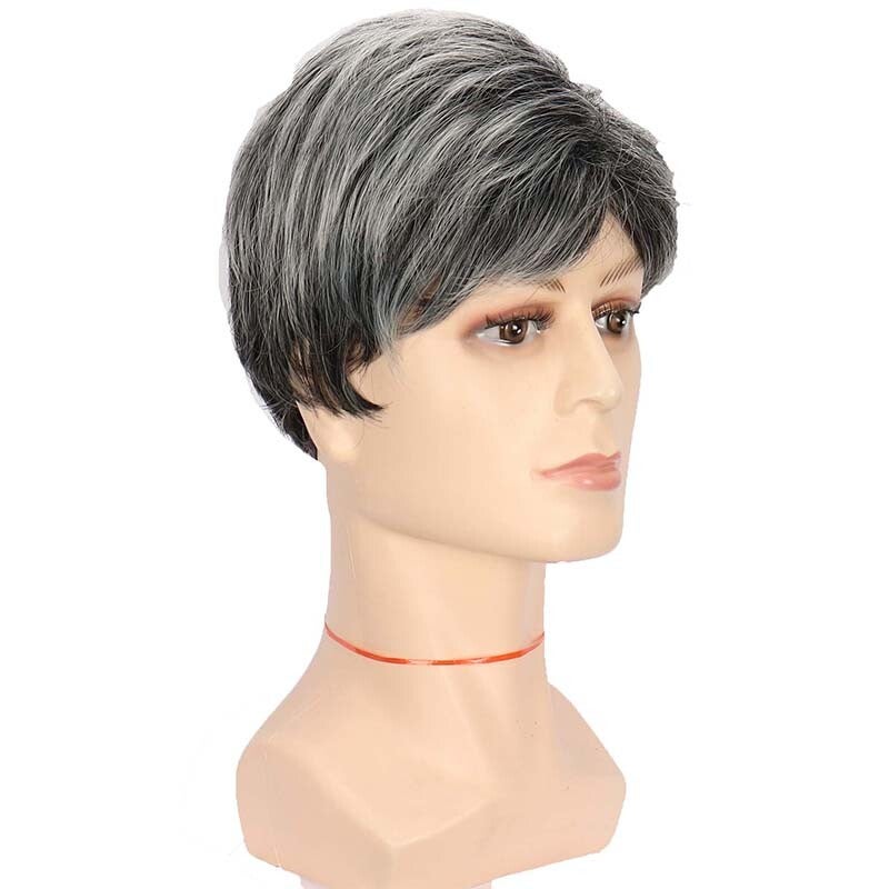 Synthetic Grey Bob Wig for White Men Short Curly Hair Wig With Natural