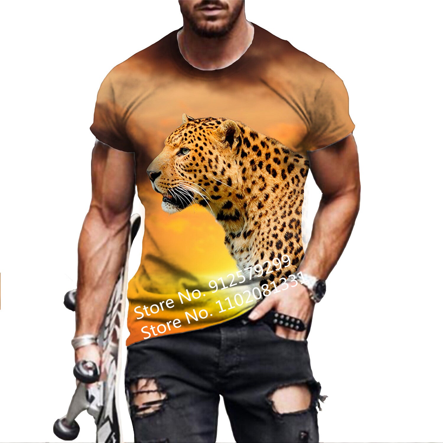 BIANYILONG brand T-shirt new fashion animal cheetah 3d T-shirt male/female casual round neck short-sleeved sports T-shirt