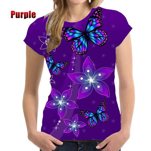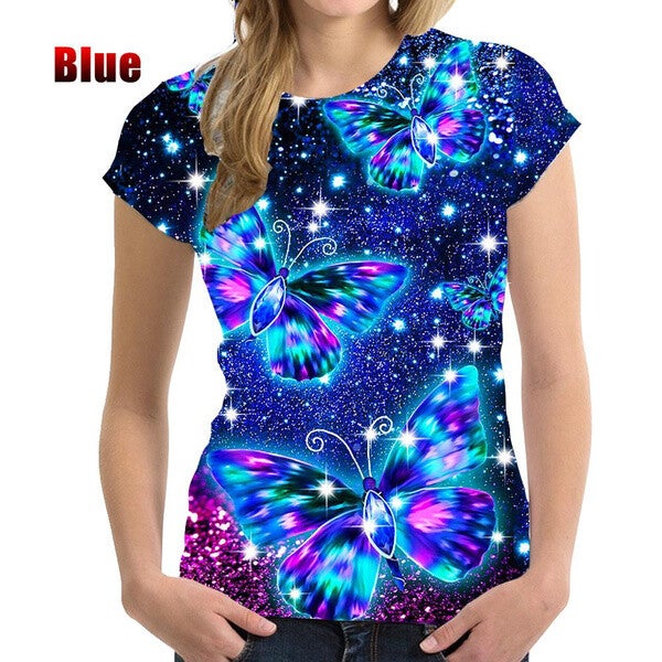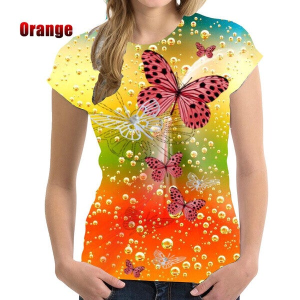 BIANYILONG Brand Summer T-Shirt Fashion Women's 3D Butterfly Print Women's T-Shirt Short Sleeve Soft Comfortable Tops