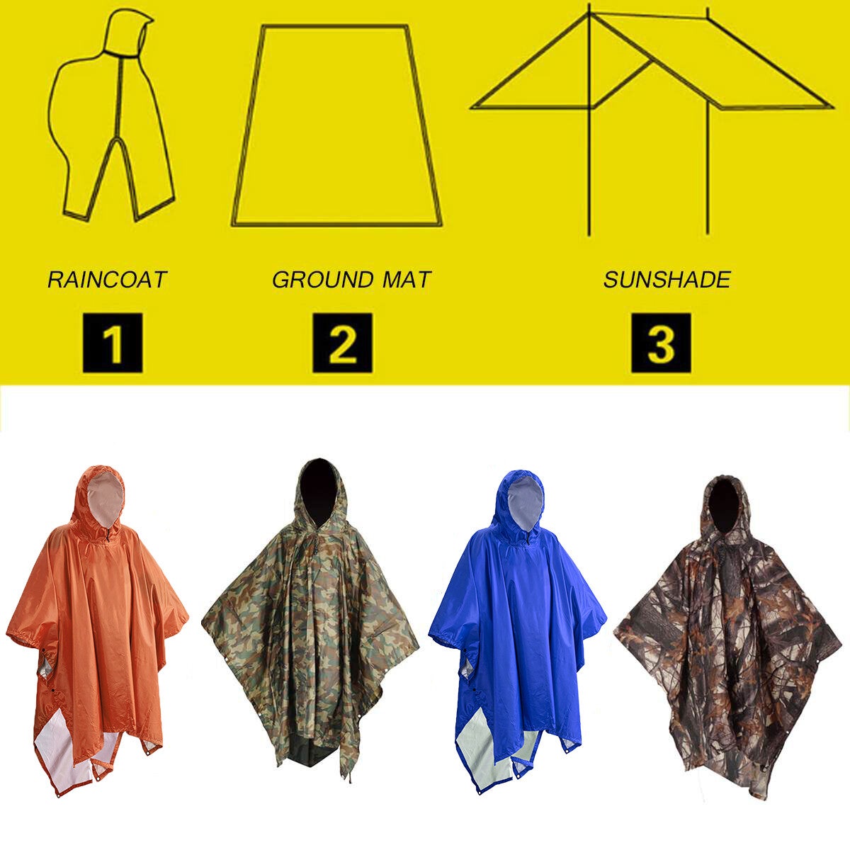 3 In 1 Portable Sunshade Camping Tarp Ground Mat Raincoat Outdoor