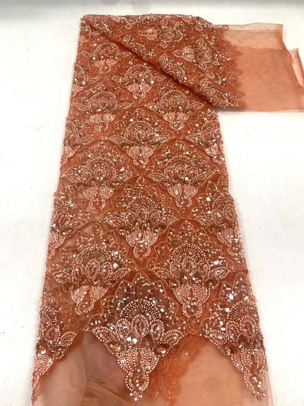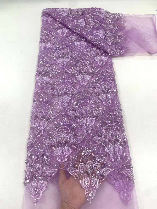 Hot Sale Light Blue Nigerian Handmade Beads Lace Fabric French Mesh