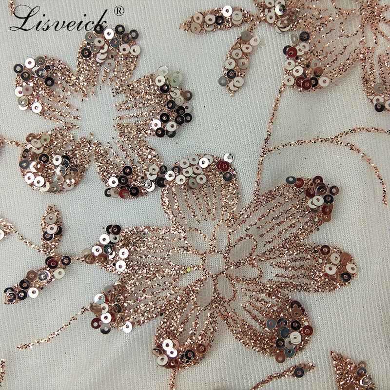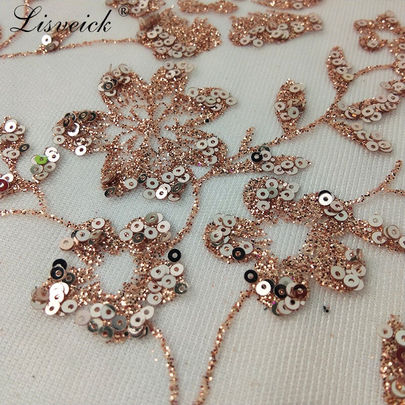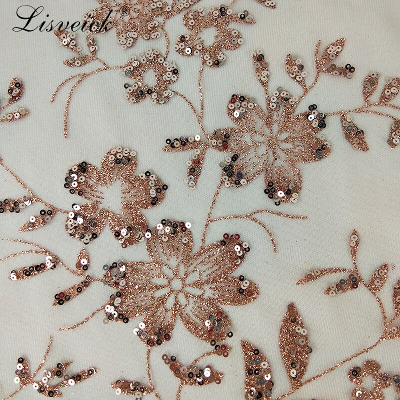 New Golden Bronzing Flower Tulle Mesh Lace Sequin Embroidery Fabric