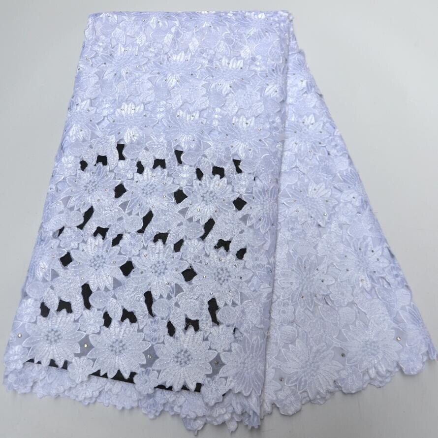 African Fabric Embroidery Swiss Voile | African Lace Fabric White