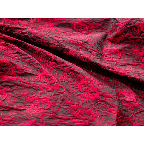 Jacquard Red Roses Fabric | Rose Embossed Fabric | Rose Fabric Dresses
