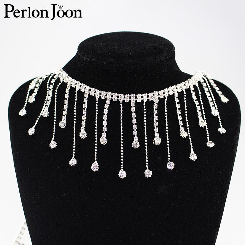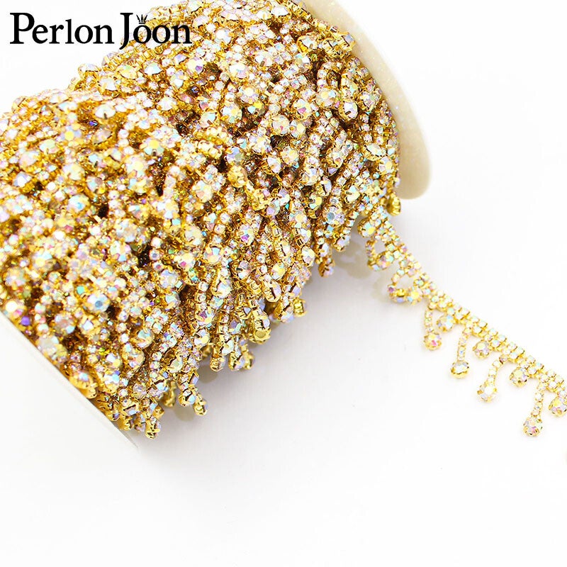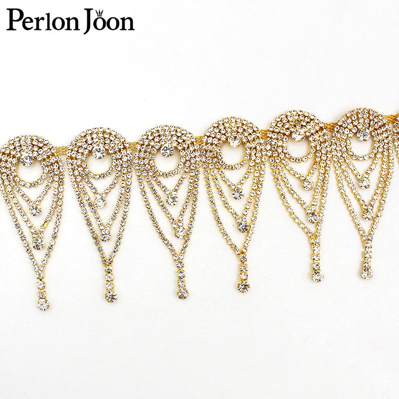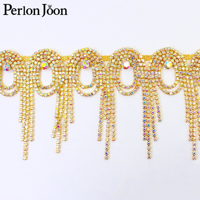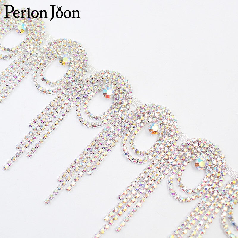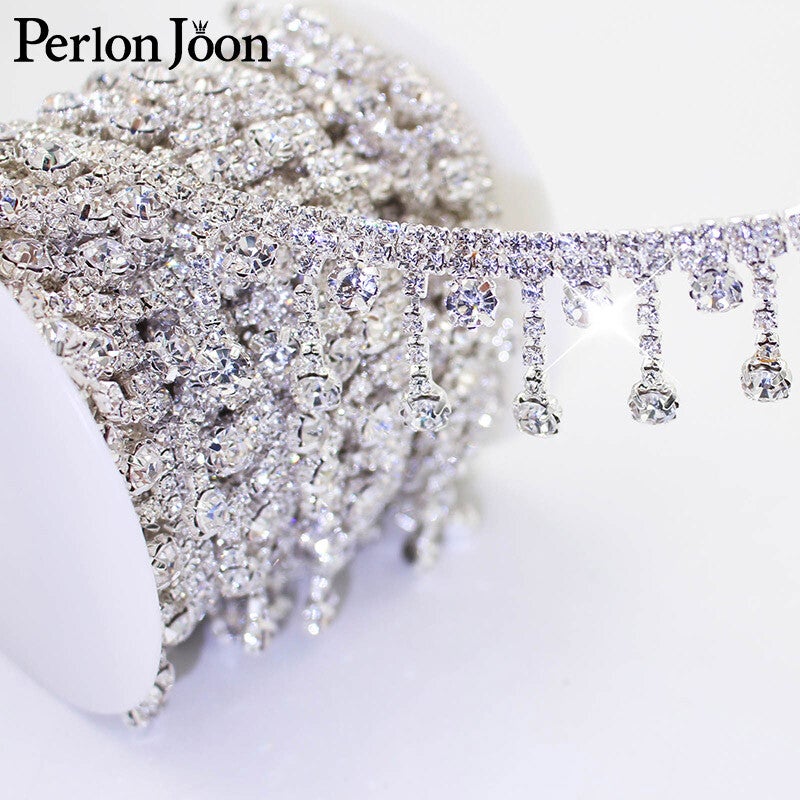 5yards/lot Sell Well Long Fringe Rhinestone Trim Silver Drop Pendant
