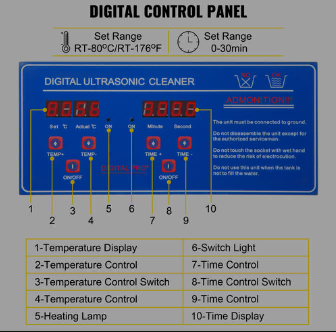 Tank Capacity: 26-30L (Since the bottom of the ultrasonic cleaner is a curved surface, the actual volume will be smaller.)