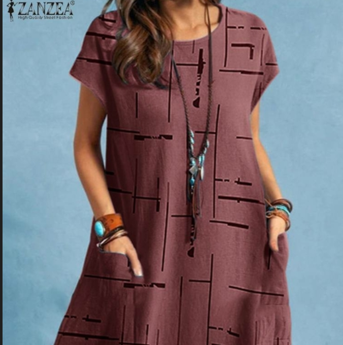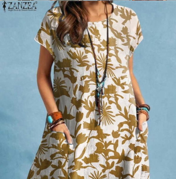 Fashion Printed Dress Zanzea Woman Clothes Short Sleeve Elegant Casual