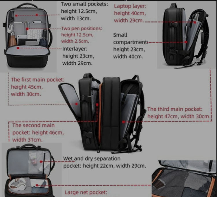 Expandable Men‘s 17 Inch Laptop Backpacks Usb Waterproof Notebook Bag