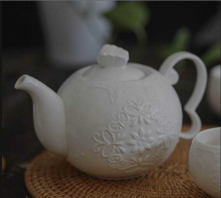 Baroque Relief Ceramic Teapot European Classic Afternoon Tea Set Pure