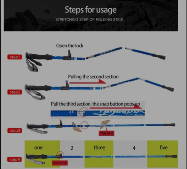 5 Section Outdoor Fold Trekking Poles Camping Portable Walking Hiking